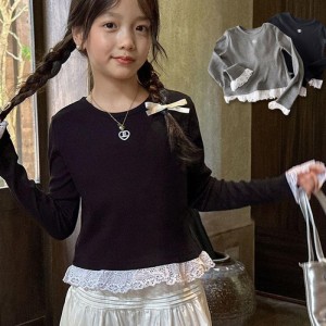 미니링하뚜 여아동 긴팔 레이스 골지티셔츠